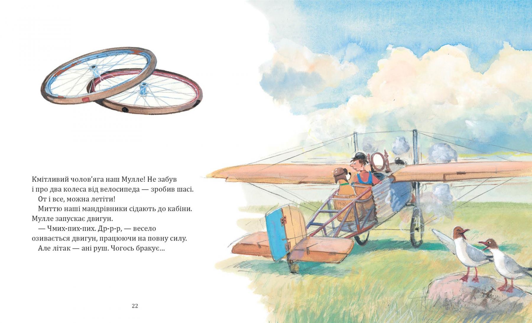 Ваш малюк хоче зробити літачок, але не знає як? З такою ж проблемою довелося зіткнутися персонажам книжки «Мулле Мек будує літак». Вигадливий Мулле разом зі своєю незмінною супутницею собакою Буффою перепливли море, тільки б побачити, що там — на іншому його березі. І постали перед неприступною горою. Як же помандрувати далі? Хіба перелетіти! Узявся Мулле будувати літак...