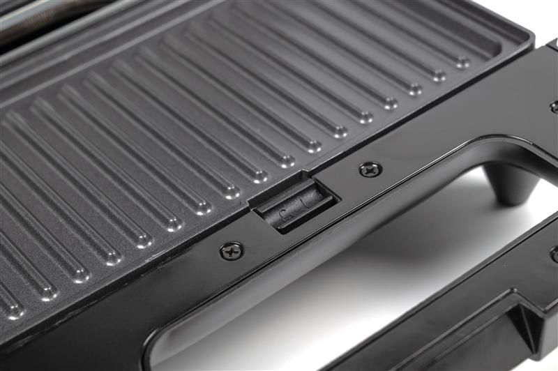 Зручна ручка з фіксатором допомагає не обпектися в процесі приготування, а її міцний затискач надійно фіксує робочі поверхні, попереджаючи їх розкриття. Користуватися Holmer HCG-13SM легко і безпечно.