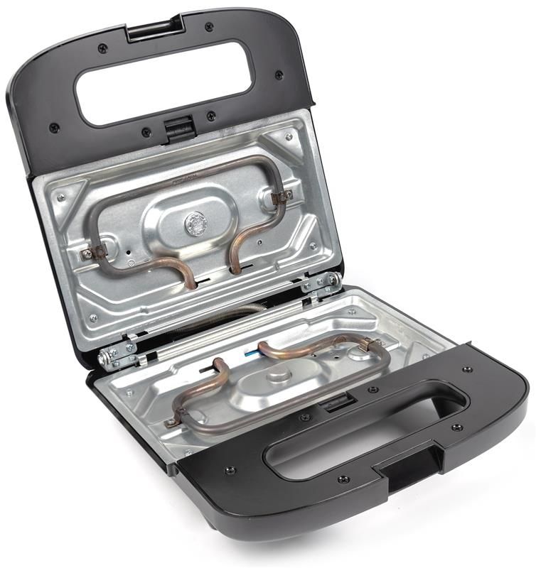 Знімна панель з оригінальними відбитками трикутної форми призначена для виготовлення сендвічів. Така оригінальна текстура пластини допомагає швидко підрум’янити кілька шматочків хліба із сиром, ковбасою або іншою улюбленою начинкою. В результаті виходить апетитний гарячий сендвіч (закритий бутерброд) з рум’яною, хрумкою скоринкою і соковитою начинкою всередині.