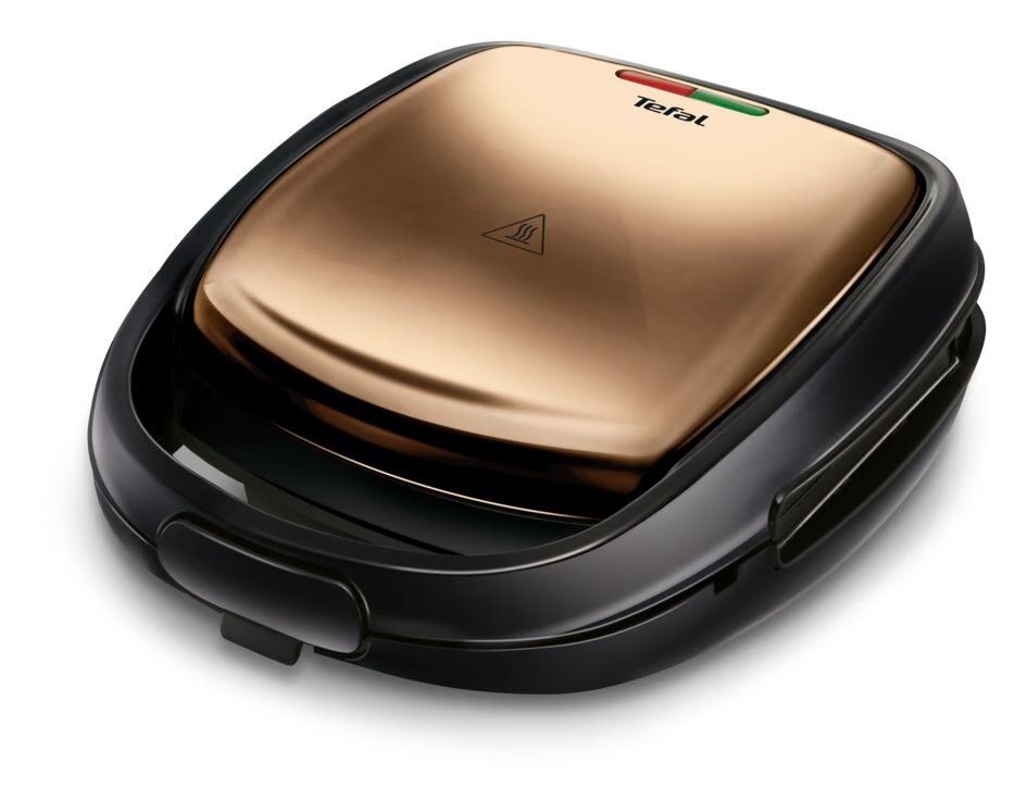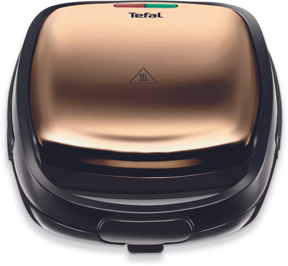 Мультимейкер Tefal Coppertinto SW341G10 - це універсальний пристрій, що поєднує в собі сендвічницю з вафельницею для приготування смачної їжі для всієї родини. У комплект входять два знімних набори пластин для вафель і сендвічів для приготування різноманітних сніданків. Завдяки індикаторам увімкнення/вимкнення, а також індикації попереднього нагрівання мультимейкер дуже простий у використанні. Пластини з антипригарним покриттям легко очищати, до того ж їх можна мити в посудомийній машині. Термостійка ручка та фіксатор забезпечують максимальну безпеку пристрою під час використання.