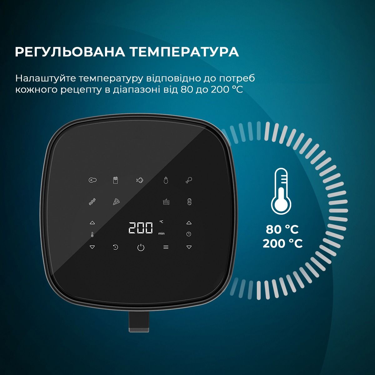 Регулюйте температуру відповідно до потреб кожного рецепту від 80 до 200 градусів Цельсія та насолоджуйтесь соковитими та хрусткими стравами.