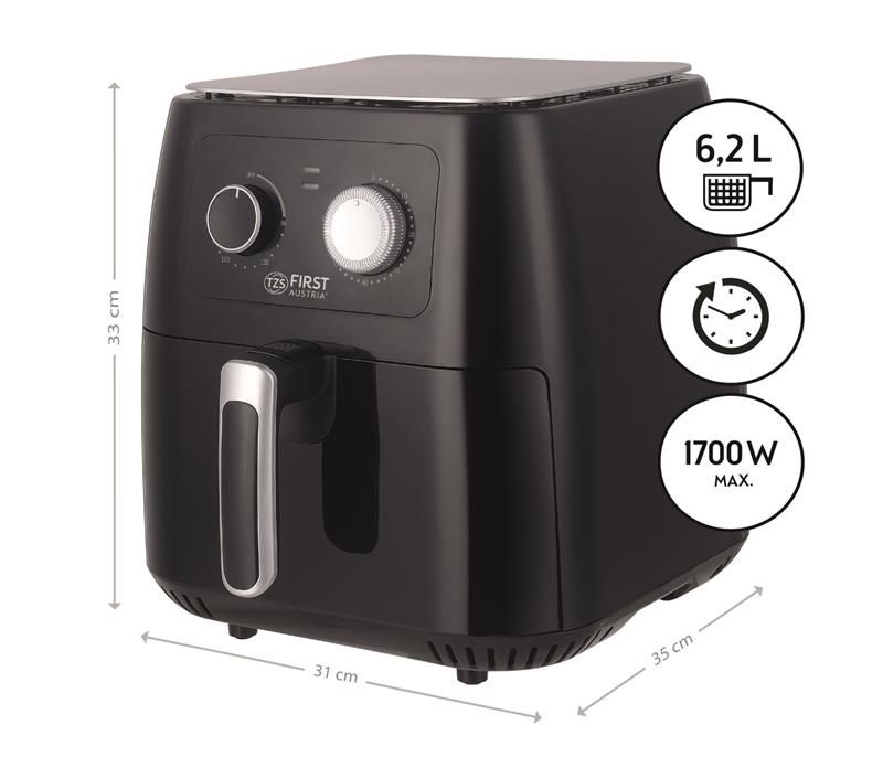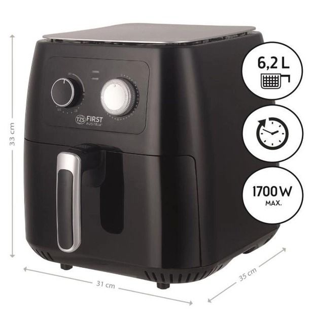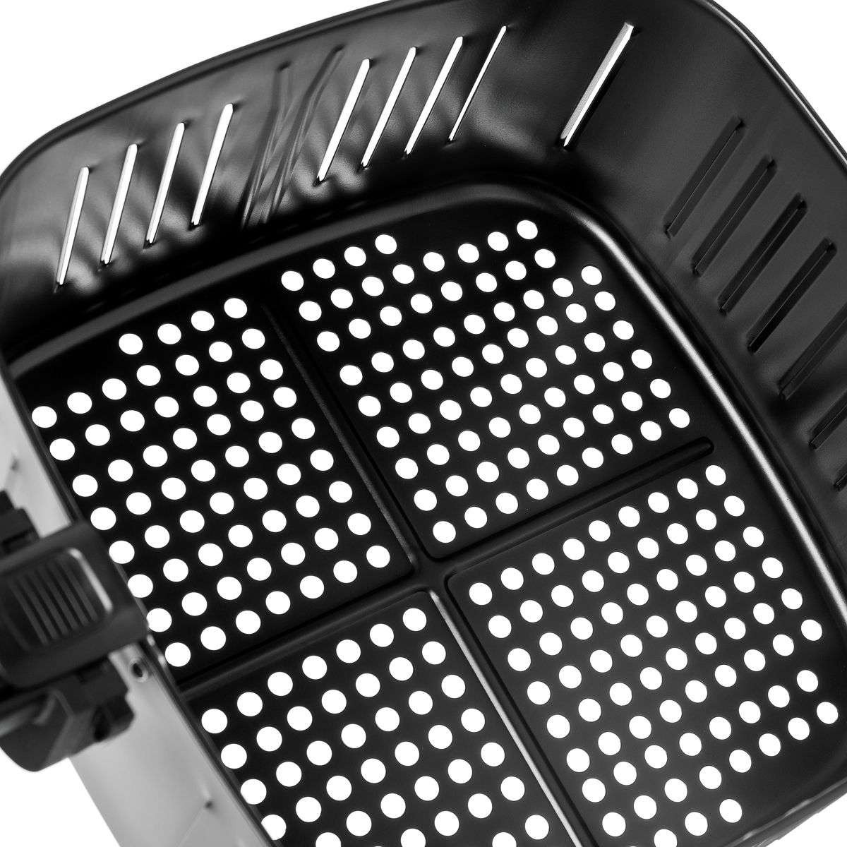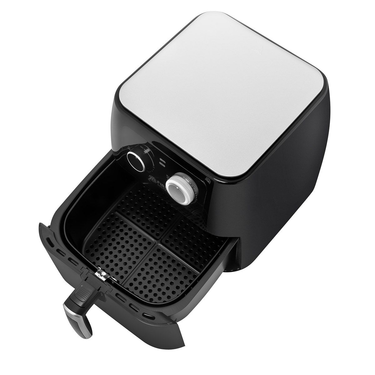 Економія часу, зусиль та жиру: фритюрниця XXL підходить для великих груп. Завдяки цій фритюрниці XXL з гарячим повітрям багато голодних гостей більше не будуть головним болем. Готуйте одразу до двох кілограмів смаженої їжі з низьким вмістом жиру та калорій. Вам більше не доведеться турбуватися про поповнення запасів під час їжі, і ви зможете продовжувати спілкування. Приготування не потребує додавання жиру. Результат, як і раніше, бездоганний: золотисто-коричневий зовні, соковитий усередині. Прилад має вибір температури до 200 градусів, запобіжник, таймер на 60 хвилин з автоматичним відключенням, захист від перегріву та термоізольований пластиковий корпус. Кошик для смаження з антипригарним покриттям легко мити і можна мити в посудомийній машині.