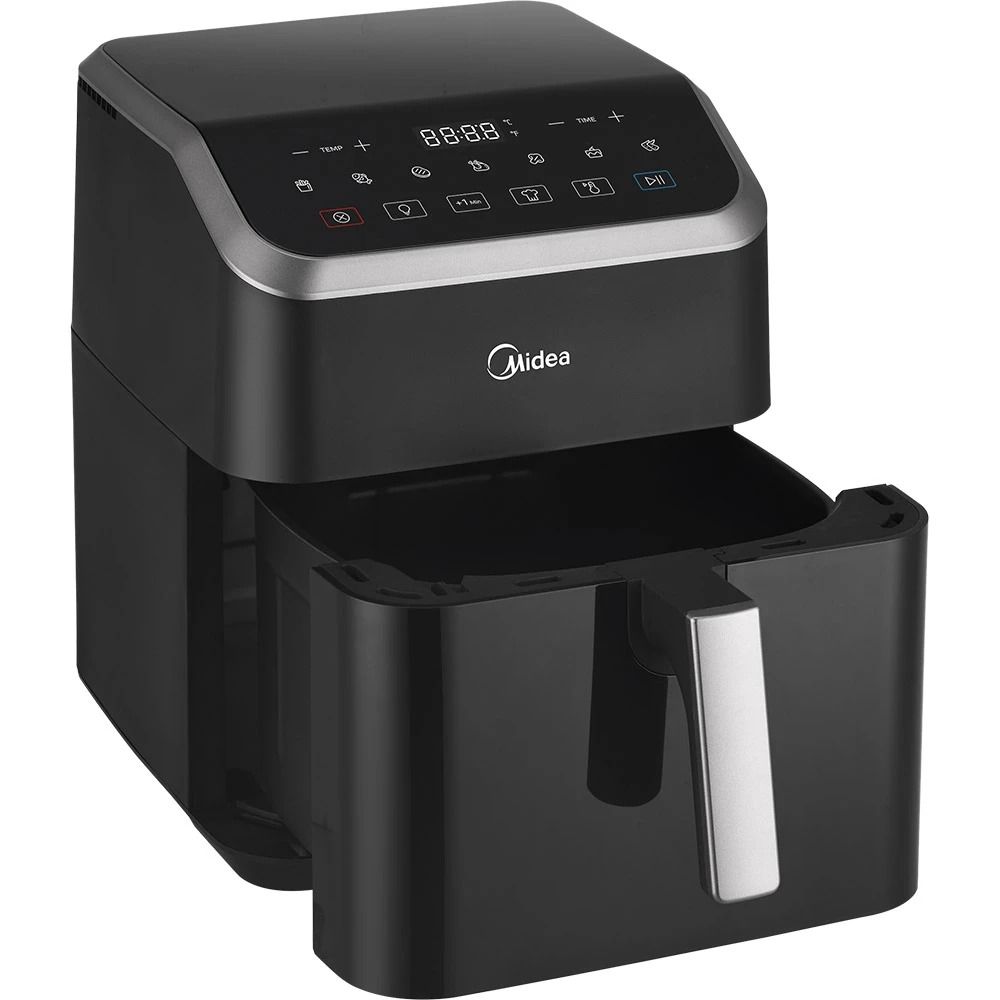 Фритюрниця Midea, створена для сім’ї, може похвалитися щедрим розміром і пропонує на 15% більше місця для приготування, ніж фритюрниці з двома кошиками, що забезпечує більш рівномірне прожарювання.