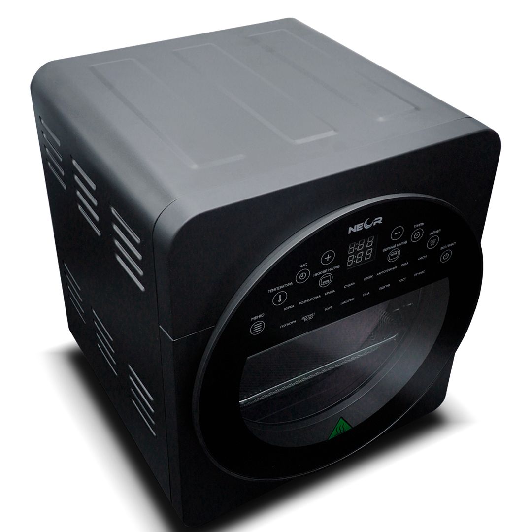 Корпус з нержавіючої сталі темно-сірого кольору у поєднанні з прозорим склом робить зовнішній вигляд мультипечі NEOR AIRY PRO 14L17 CH привабливим та елегантним. Її розміри, 435 x 385 x 430 мм, дають можливість легко інтегруватися у будь-який кухонний простір. Змінна температура у межах 50-220 С дозволить готувати широке коло страв, не турбуючись про пригорання та сирий вміст.