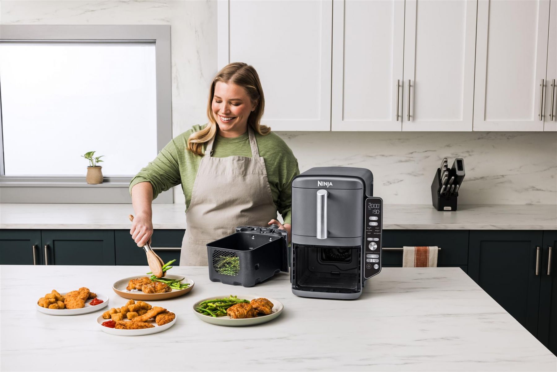Зовнішній дизайн цієї моделі Ninja був оптимізований для більшої зручності використання. Це особливо корисно для користувачів з невеликими кухнями та потребою готувати для сім’ї до 8 осіб. У порівнянні з попередньою моделлю AF400, цей пристрій має на вузький корпус на 30%, що дозволяє економити цінний простір. Компактні розміри не впливають на функціональність – ви отримуєте потужну мультипіч у більш ергономічному корпусі.
