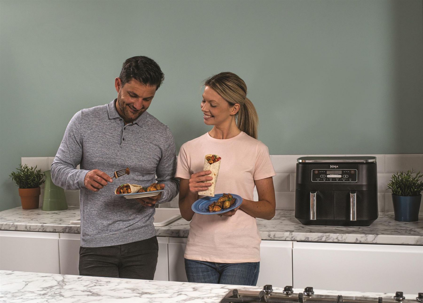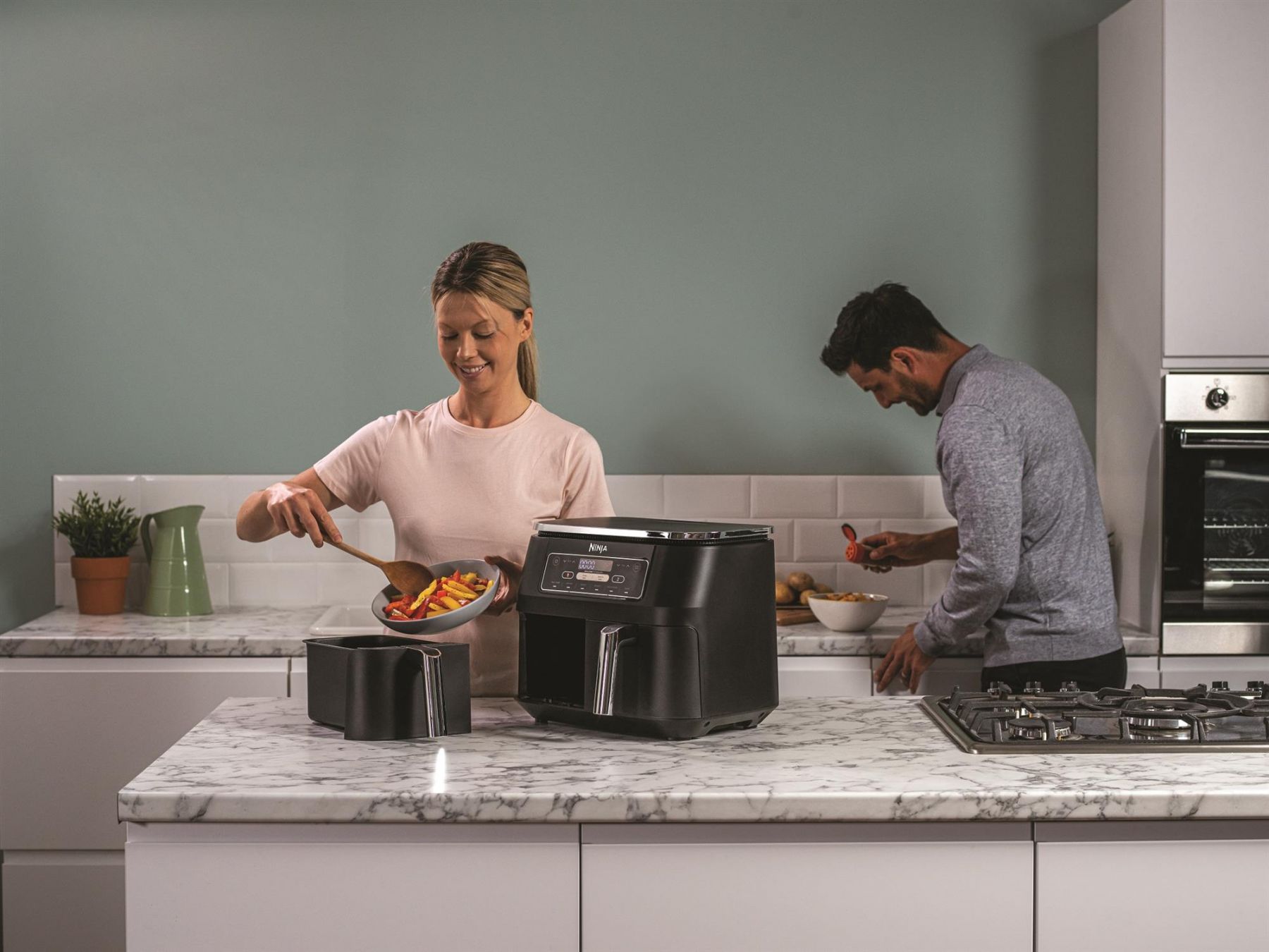 Мультипіч Ninja Dual zone потужністю 2400 Вт допоможе швидко та легко приготувати смачні та корисні страви без зайвого додавання олії, щоб нагодувати всю родину та вразити гостей.