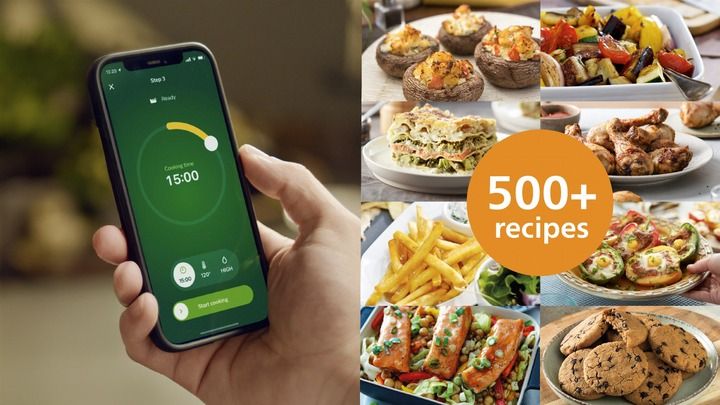 Найкраща подвійна аерогриль з індивідуальними рецептами у додатку HomeID. Покрокові інструкції та сотні апетитних страв з конкретними налаштуваннями для вашої аерофритюрниці з подвійним кошиком.