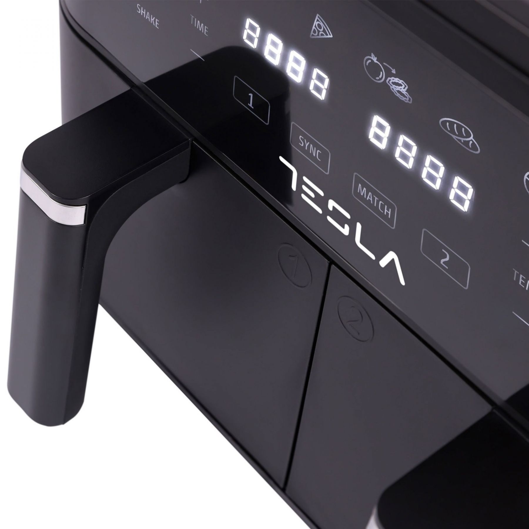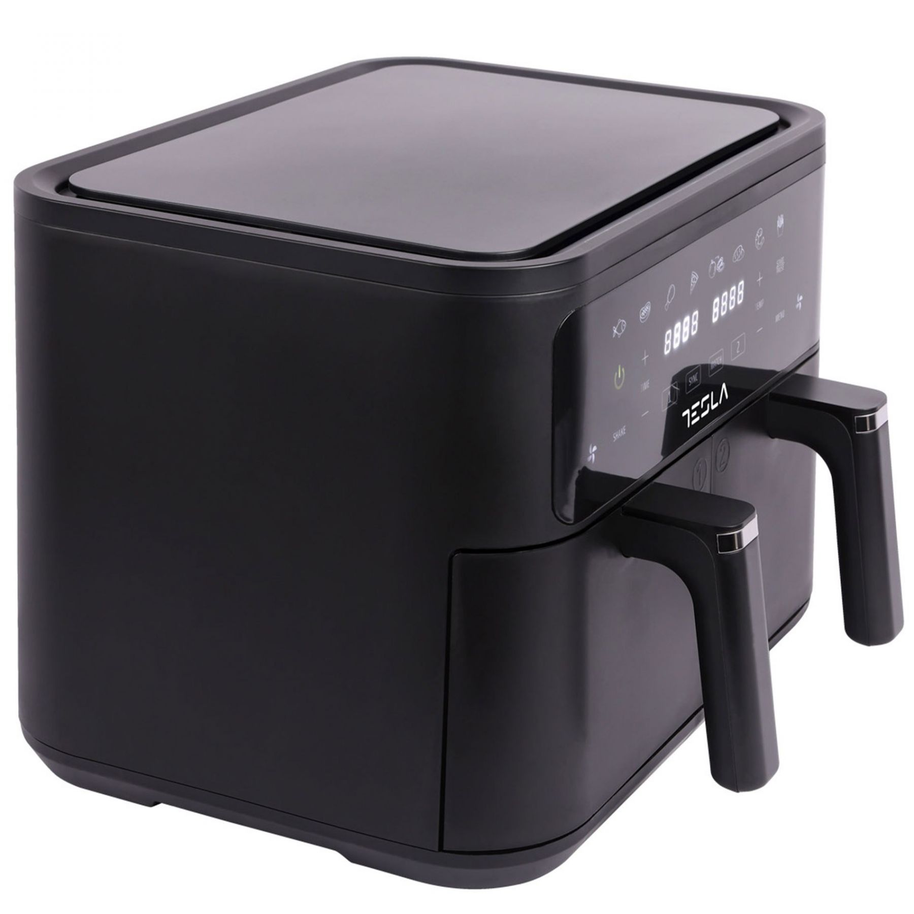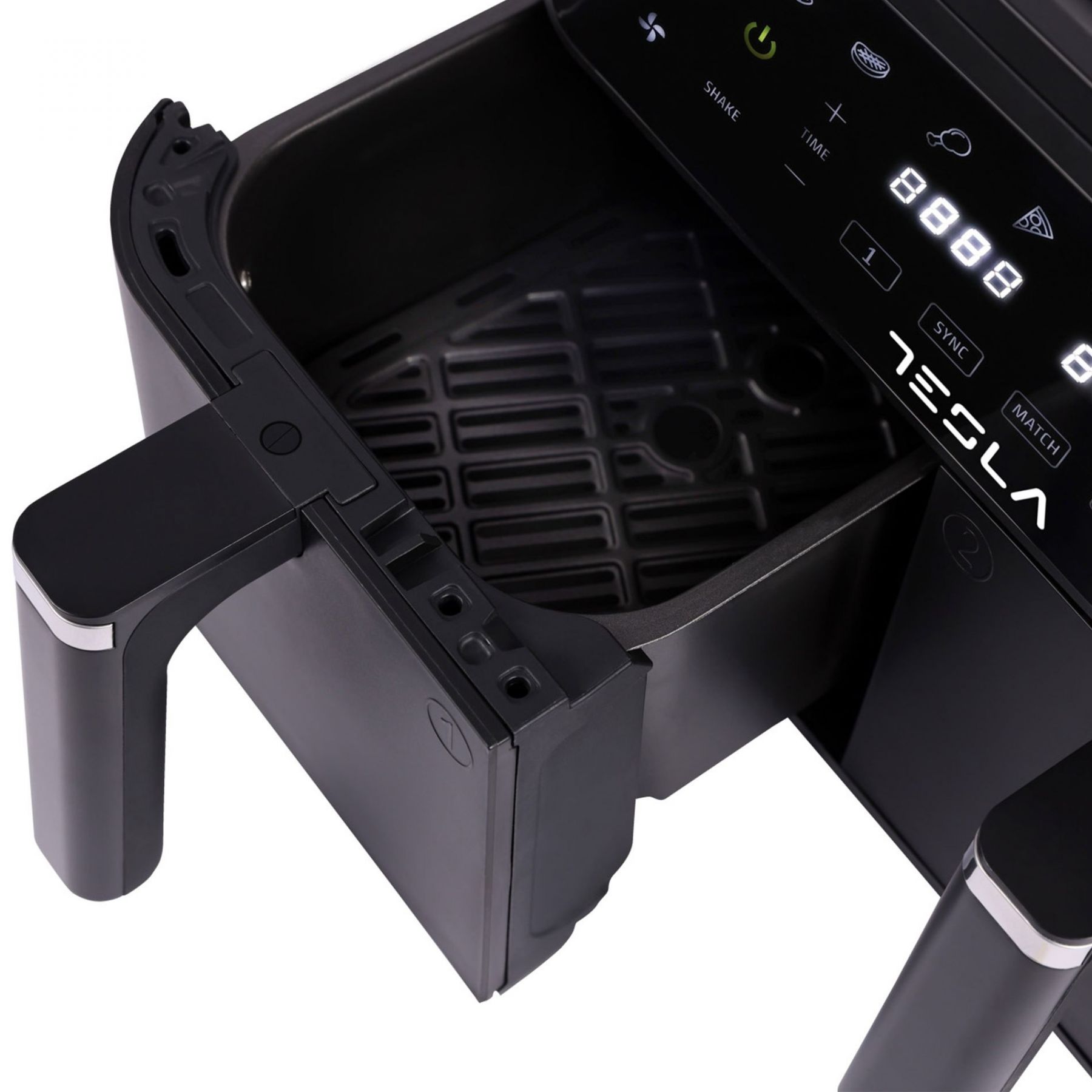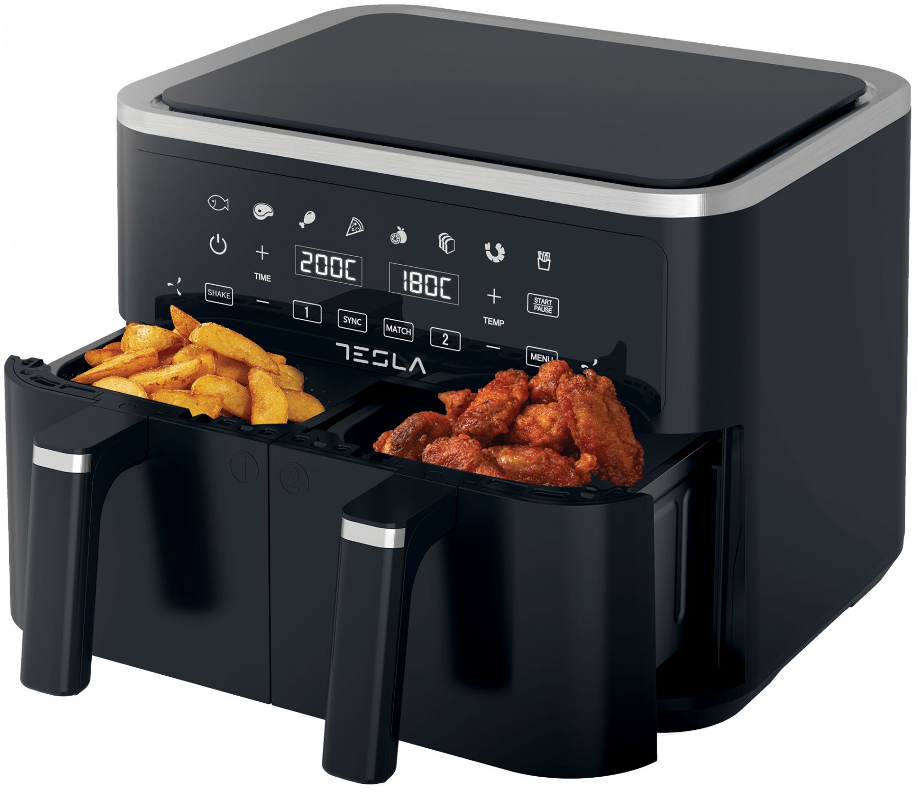 Готуйте дві різні страви одночасно за допомогою функції подвійного приготування нашої аерофритюрниці. Кожен кошик працює незалежно, забезпечуючи відмінність смаків завдяки настроюваній температурі та часу приготування.