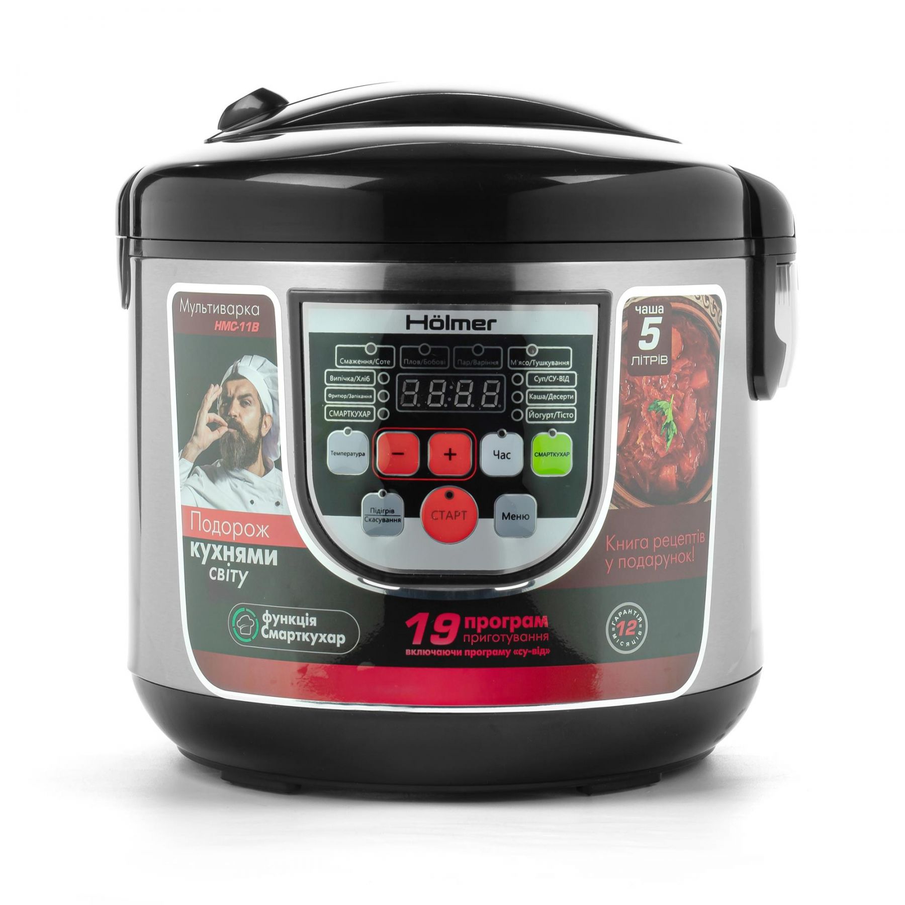 Мультиварка Holmer HMC-11В - проста в управлінні, містка і дуже ефективна помічниця на кухні. Має широкий функціонал, 19 програм приготування (пароварка, випічка, варіння, тушкування, підігрів та ін.), LED дисплей, відкладений старт (24 години), внутрішню чашу з антипригарним покриттям. Мультиварка Holmer HMC-11В допоможе приготувати все, що вам потрібно, від сніданків до основних страв. Смачні супи, ситні тушковані страви, корисні страви на парі, вишукані десерти та навіть хрусткий хліб!