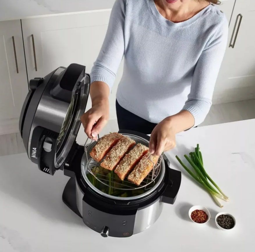 Ще одна причина купити мультиварку-скороварку Ninja — це спеціальна двостороння решітка. Тому ви можете внизу розмістити гарнір, а зверху — запашну рибу. І зекономивши вдвічі більше часу на приготування отримати обидві страви для себе, гостей та родини. За один такий цикл ви отримаєте аж 6 порцій.