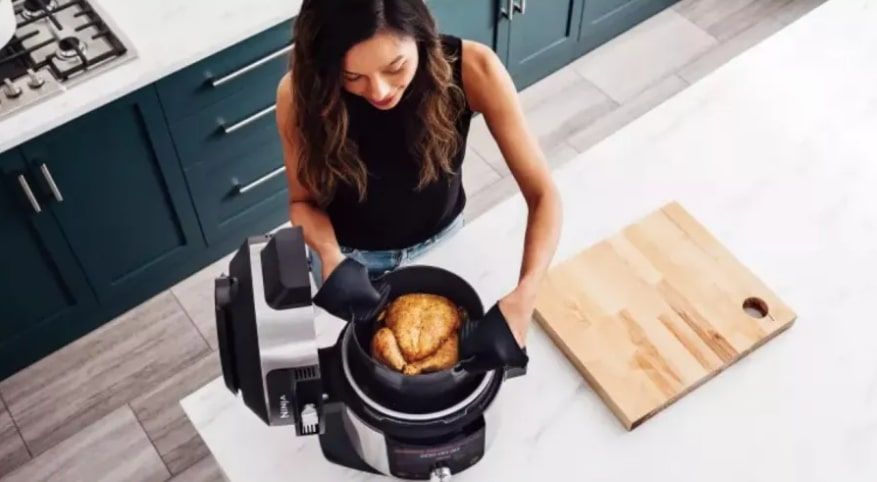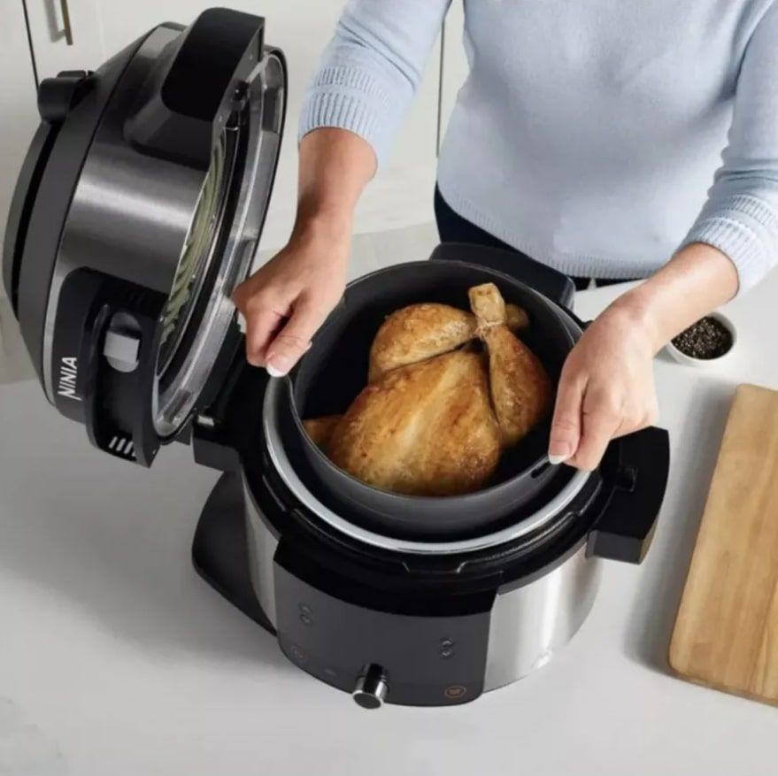 Якщо у вас мало часу, але є бажання поласувати хрусткою курочкою, то вмикайте в мультиварці режим приготування під тиском, аби найшвидше вона обробилася зсередини, а після застосовуйте технологію AirFry від Ninja. Тому ваш обід буде готовий на 70% швидше, та ще й з мінімумом олії. Скороварка також працює з замороженими продуктами.