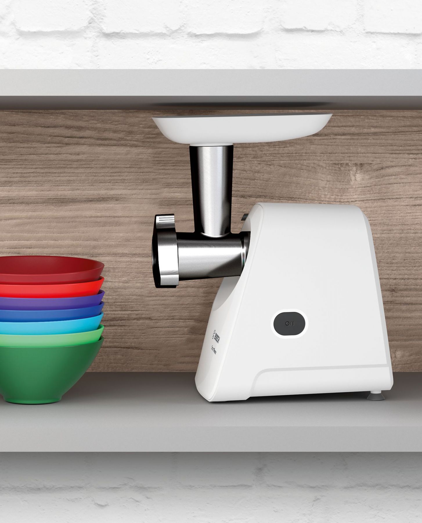 Завдяки двом дискам 3.8 і 8 мм можна перемолоти будь-які продукти. Диск з отвором 3.8 мм з легкістю подрібнить свинину та яловичину на паштет і сервелат. Диск з отвором 8 мм допоможе обробити смажену свинину на гуляш або перемолоти печені чи ковбасні вироби на запіканку.