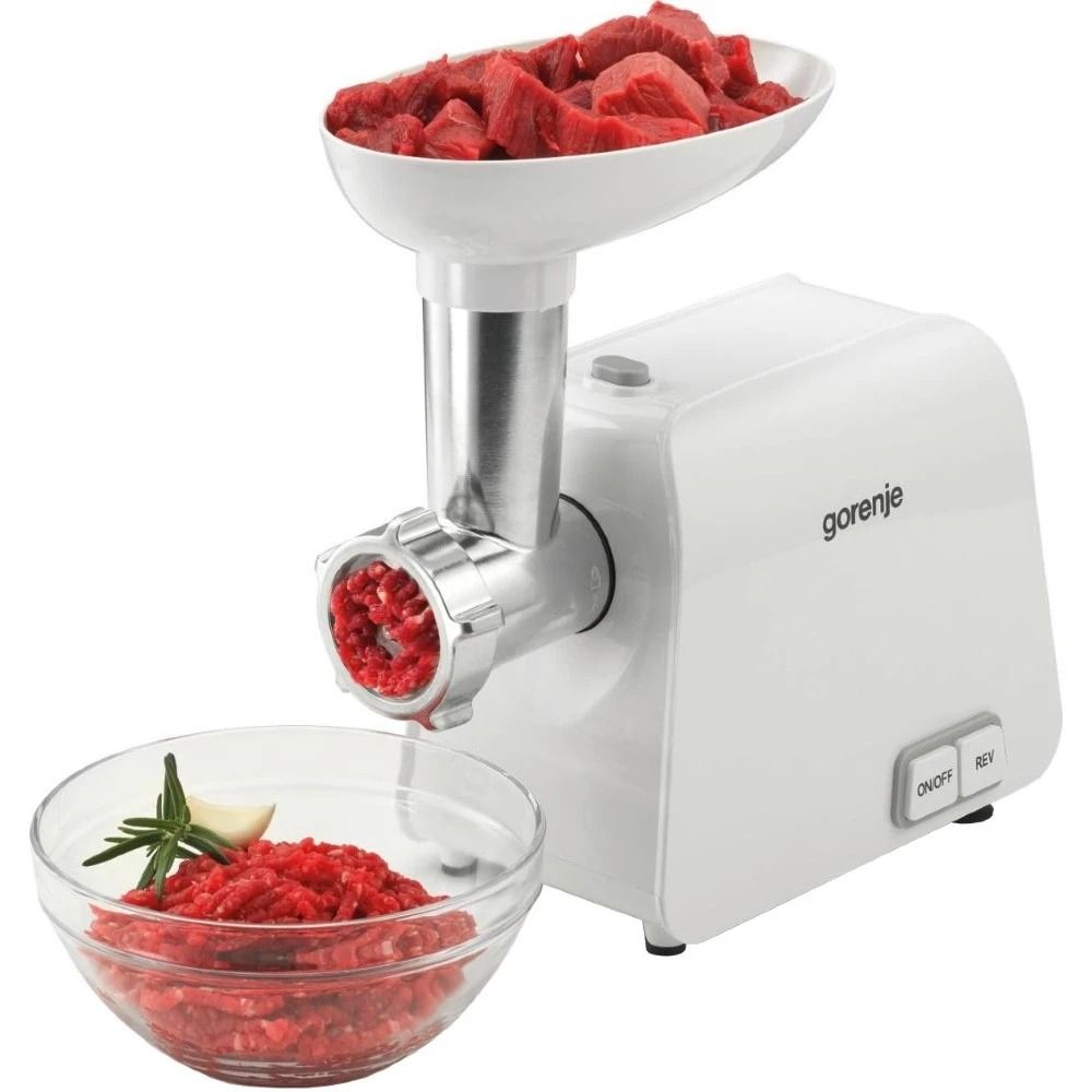 Електром'ясорубка GORENJE MG 1602 W - надійна та проста у використанні. Потужність двигуна складає 1600 Вт. Продуктивність подрібнення м'яса дорівнює 1.9 кг/хв. М'ясорубка має міцний металевий литий корпус у пластиковій оболонці. Кнопки увімкнення/вимкнення та реверсу виведені на бічну панель для зручного використання.