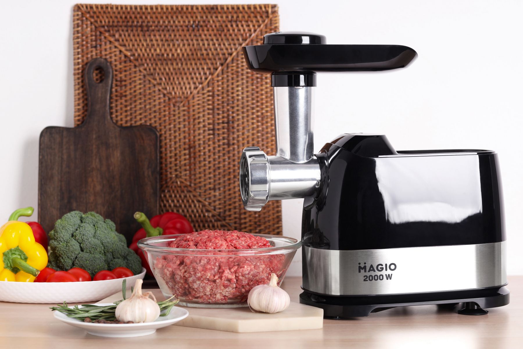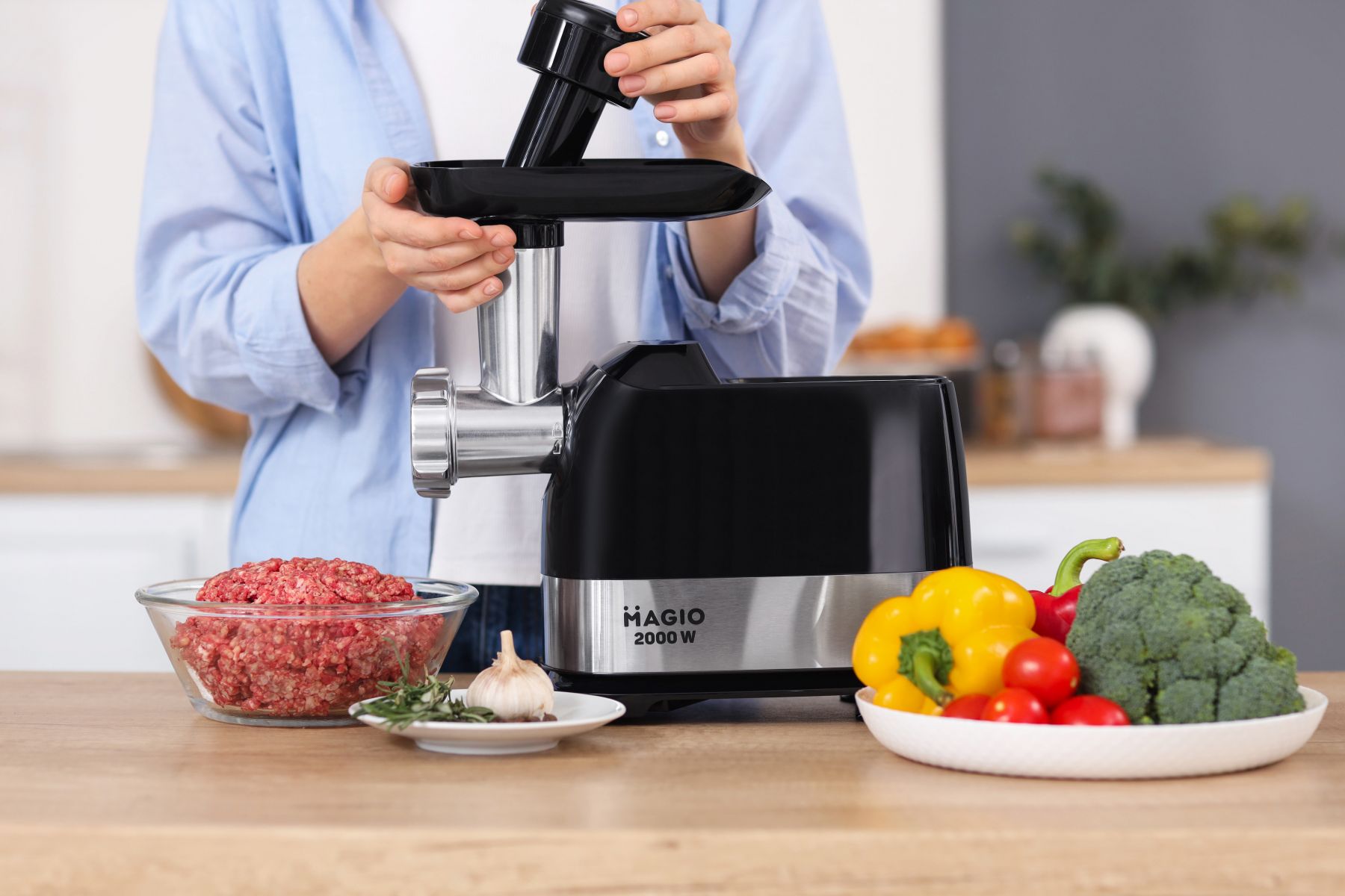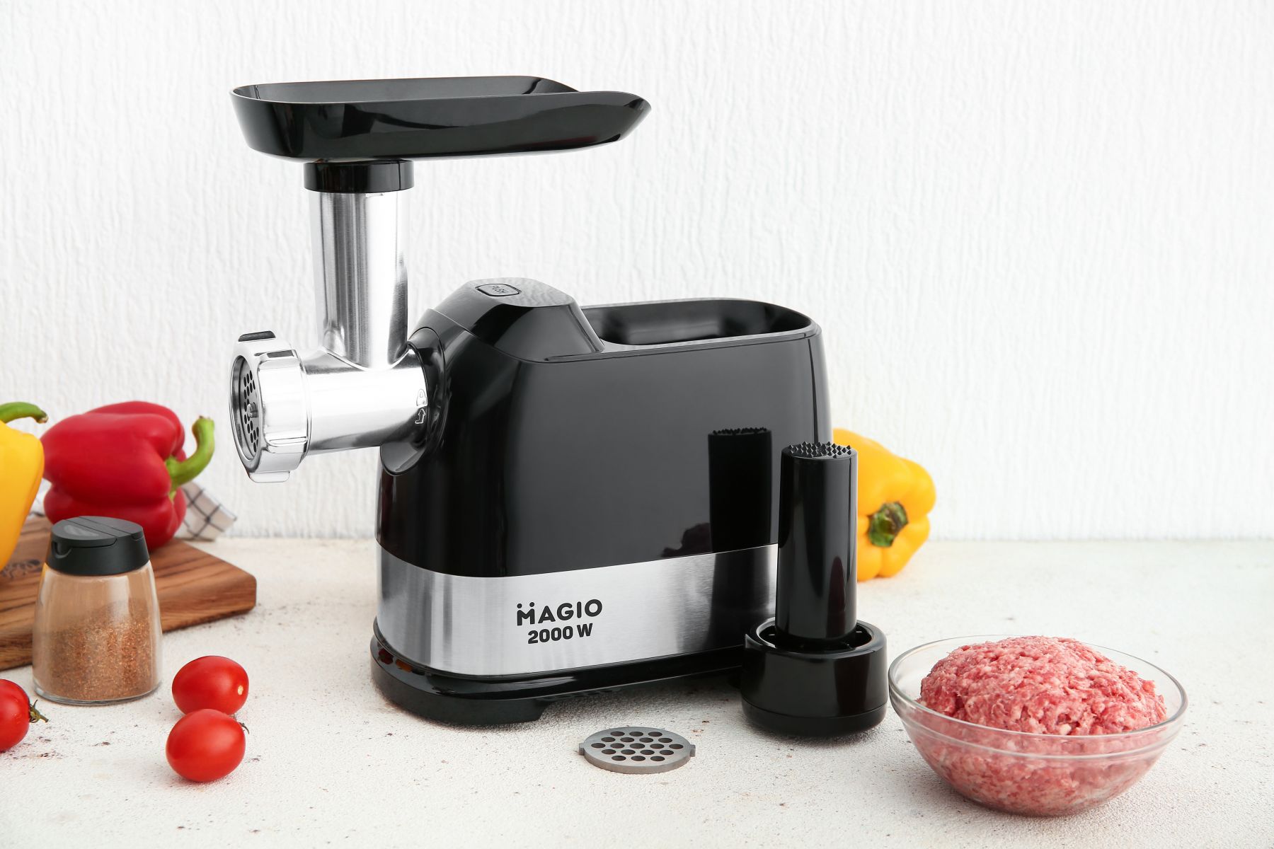 Magio MG-267 – потужна та продуктивна електрична м’ясорубка для подрібнення м’яса, риби та овочів, що відмінно поєднує привабливий дизайн та високу якість.