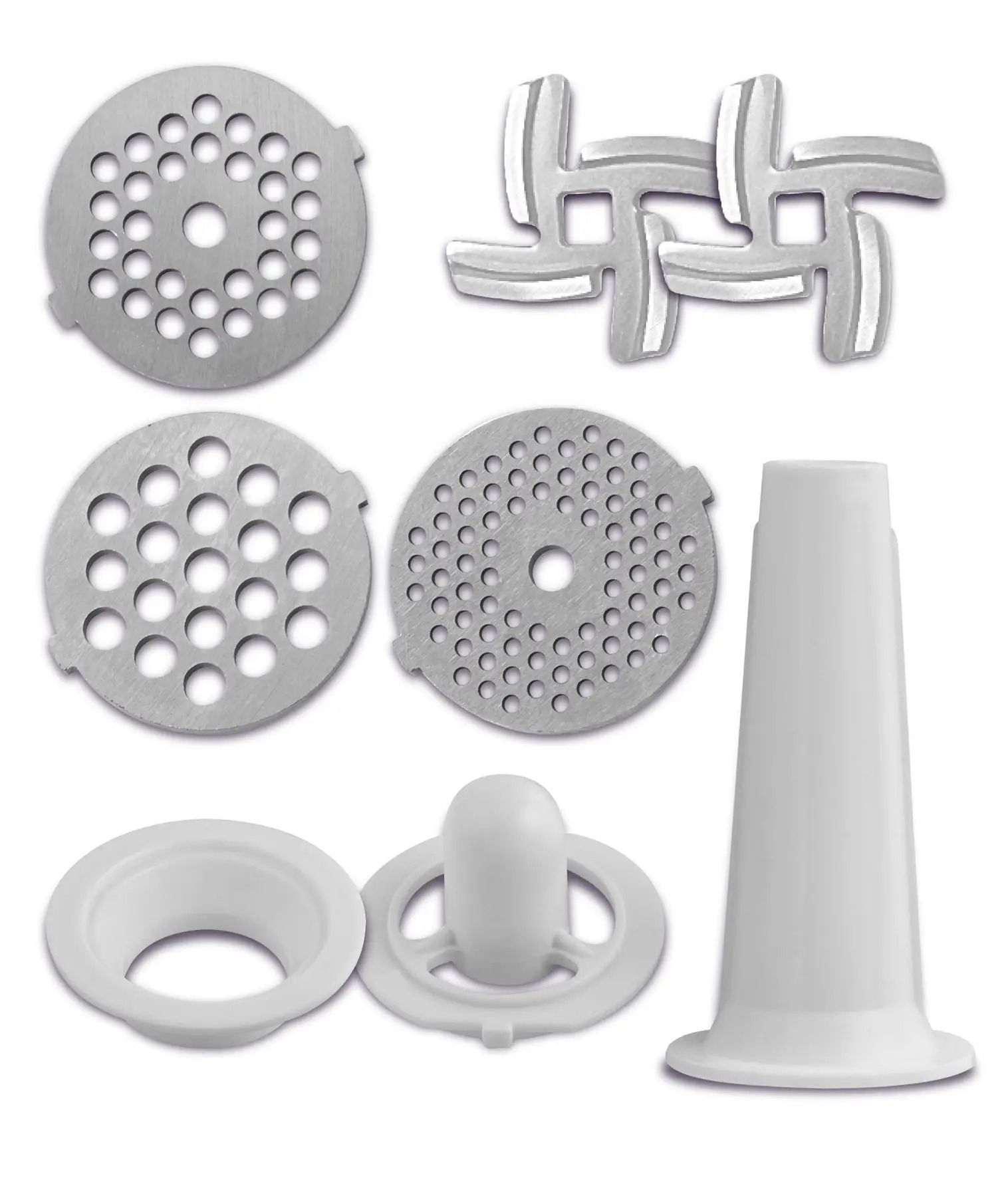 За допомогою насадки для ковбасок Ви зможете легко приготувати домашні ковбаски, сосиски або сардельки: натуральна оболонка кріпиться на цю насадку, насадка – на шнек, і Вам залишається лише контролювати наповнення майбутньої ковбаски фаршем.