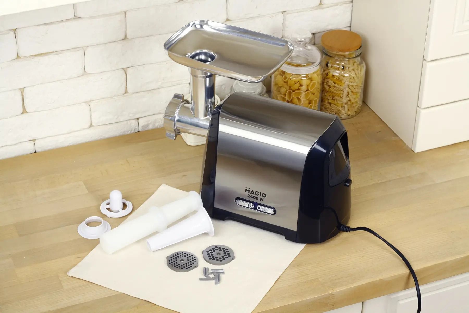 Потужна м’ясорубка MG-269 у 2400 Вт допоможе Вам швидко та з легкістю подрібнити м’ясо, рибу та овочі. Два режими роботи допоможуть впоратися навіть із жорстким м’ясом та жилками. Також у комплекті з м’ясорубкою йде два ножі з нержавіючої сталі, які прослужать Вам довго.