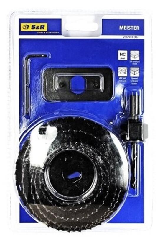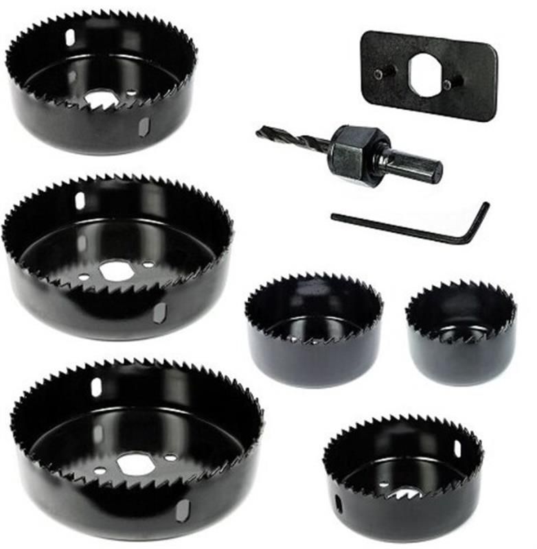 Діамантові коронки для роботи з деревиною доставляються в кількості 7 штук різних розмірів. Аксесуари використовуються з професійними крапельками, виготовленими з гарячої сталі, також можуть використовуватися в гіпсокартоні, MDF, фенері, тонкому пластику тощо. Діаметр діаметром становить 51-102 мм.