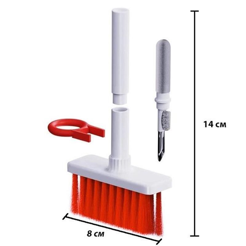 • Clean set 5-в-1 набір для чищення комп’ютера з нейлоновою щетиною, флокуюча губка високої щільності щітка, металевий наконечник пера та Keycap знімач, подвійний головкою Маскувальний дизайн, щоб задовольнити різні рішень з очищення
