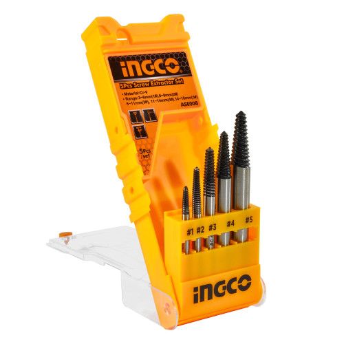 Набір екстракторів 5 шт INGCO призначений для виконання демонтажу зламаного кріплення.
