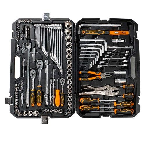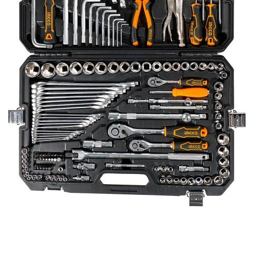 Набір інструменту універсальний 142 предмети INGCO INDUSTRIAL використовується для ремонту, монтажу й обслуговування різноманітних конструкцій та агрегатів. Кожен інструмент виготовлений з міцної сталі високої якості.