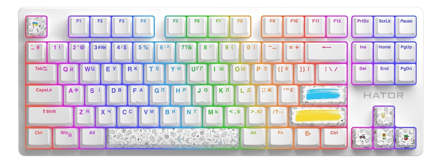 Комплект кейкапів HATOR Authentic Edition PBT keycaps є ідеальним рішенням для тих, хто цінує якість і стиль у кожній деталі своєї клавіатури. Ці клавіші виготовлені з високоякісного PBT пластику із застосуванням передової технології подвійного лиття, що забезпечує стійкість до стирання та довговічність символів на них. Кожна клавіша з ANSI розкладкою та профілем OEM створена для того, щоб надати вашій клавіатурі не лише стильного, але й функціонального вигляду.