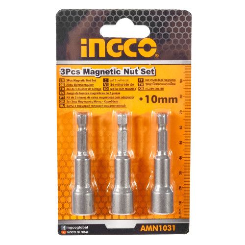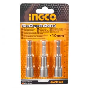 Набір головок торцевих магнітних 10 мм 1/4"х65 мм 3 шт INGCO використовується спільно з гайковертами для монтажу або демонтажу різьбових з'єднань.