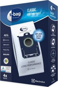 Набір мішків Electrolux S-bag Long Performance E201S - це нові пылесборники, які служитимуть вам до 50% довше звичайного паперового пилозбірника. Завдяки новому матеріалу він більше готується і забезпечує високу потужність всмоктування до досконалого заповнення.