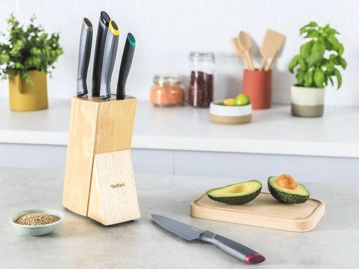 Набір ножів Tefal Fresh Kitchen K122S504 з дерев’яною підставкою – ідеальний набір для щоденного домашнього використання.