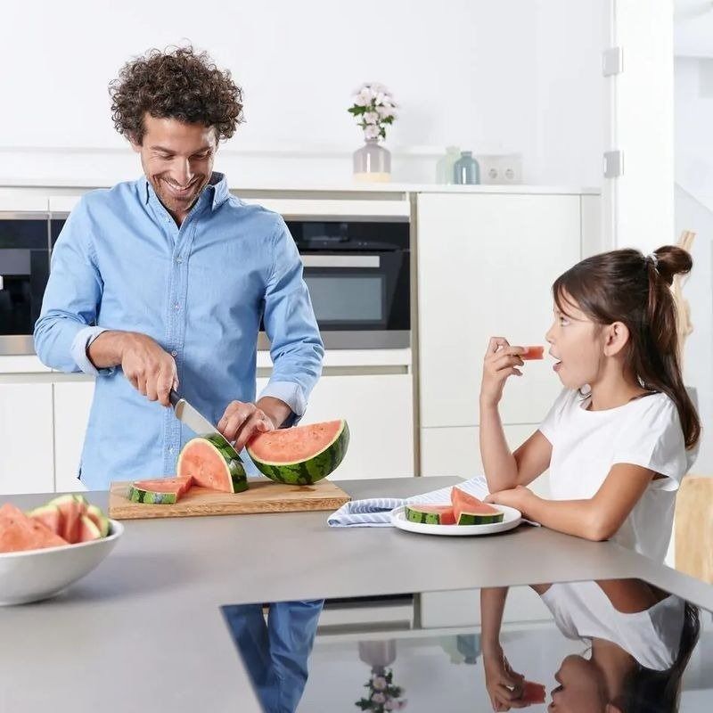 Традиції якості у поєднанні з сучасністю у стильному дизайні цих ножів. Ніж комфортно лежить у руці, ним легко та швидко обробити будь-який вид продукту.