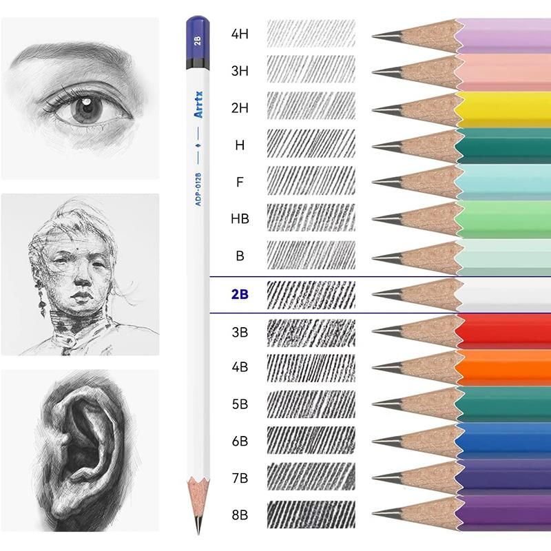 Набір професійних олівців для малювання Arrtx складається із 14 високоякісних графітових олівців 2B. Олівці мають унікальний колірний дизайн, що відповідає естетиці художників.
