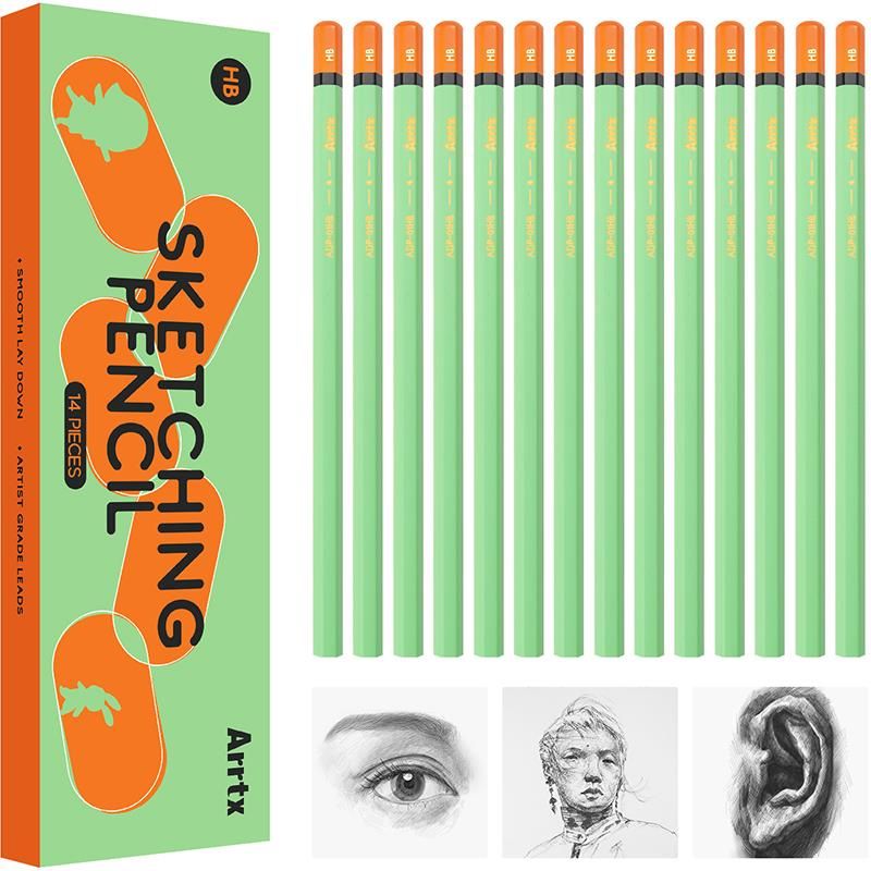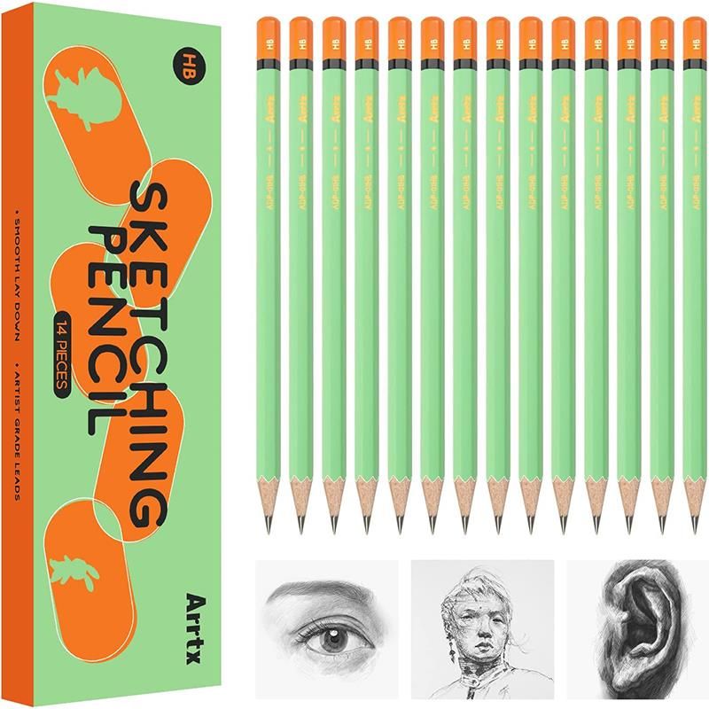 Набір професійних олівців для малювання Arrtx складається з 14 високоякісних графітових олівців HB. Олівець має унікальний колірний дизайн, що відповідає естетиці художників (Примітка: Олівець HB еквівалентний олівцю №2).