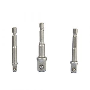 Набір перехідників для торцевих головок INGCO AMN365A01 (3 шт.) призначений для переходу від шестигранного до квадратного типу кріплення під час роботи з торцевими головками. Виготовлений із хромованадієвої сталі (50BV30) з нікелевим покриттям. Розміри перехідників 1/4″ та 3/8″ — 65 мм, 1/2″ — 73 мм. Хвостовик — 6,35 (1/4″).