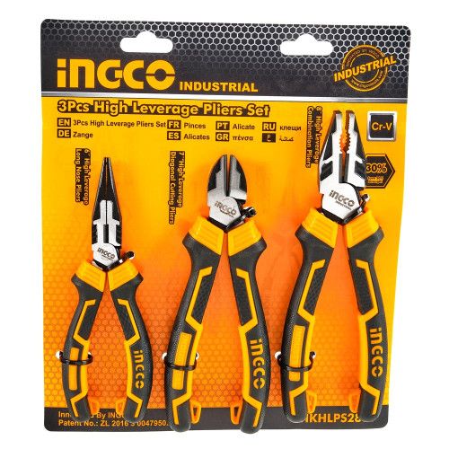 Набір шарнірно-губцевих інструментів Profi 3 предмети INGCO INDUSTRIAL — це комплект, що складається з трьох предметів: комбінованих плоскогубців, бокоріза та довгогубців.