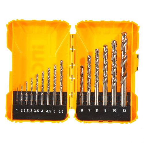 Набір свердел INGCO INDUSTRIAL складається з 15 предметів з циліндричним хвостовиком, розмірами 1, 2, 2.5, 3, 3.5, 4, 4.5, 5, 5.5, 6, 7, 8, 9, 10 та 12 мм.