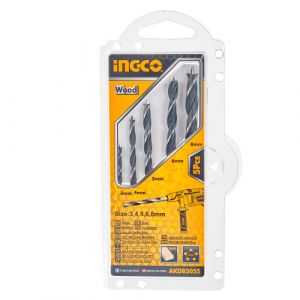 Набір свердел по дереву 5 шт 3-8 мм INGCO виконаний з високоміцної сталі.
