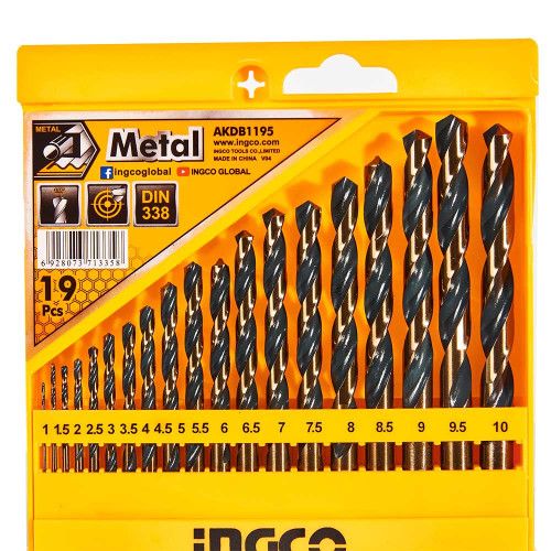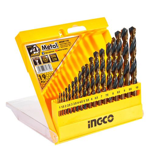 Набір свердел по металу 19 шт 1-10 мм INGCO виконаний зі швидкорізальної сталі (HSS).