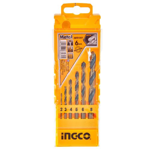 Набір свердел по металу 6 шт 2-8 мм, коробка INGCO виконаний з високоміцної сталі.