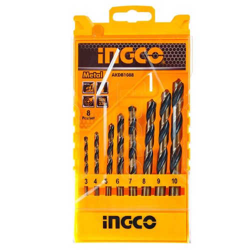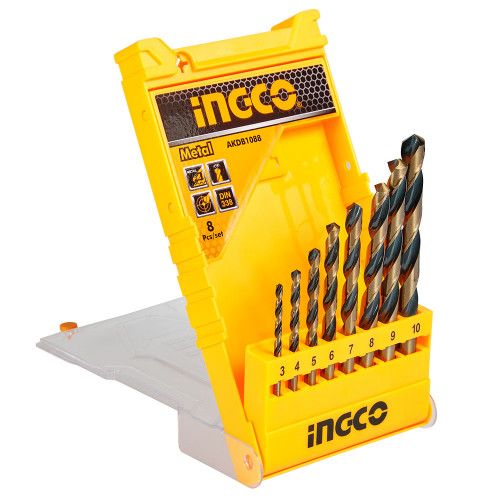 Набір свердел по металу 8 шт 3-10 мм INGCO виконаний зі швидкорізальної сталі.