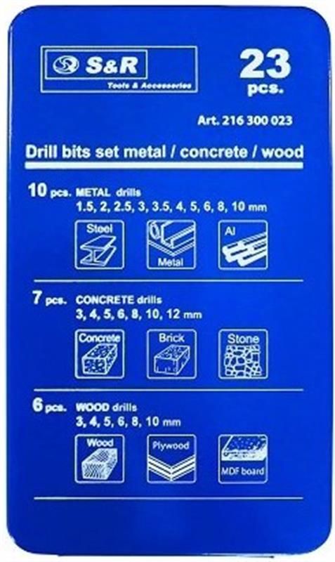 Набір свердл комбінований S&R 23 шт (216300023)