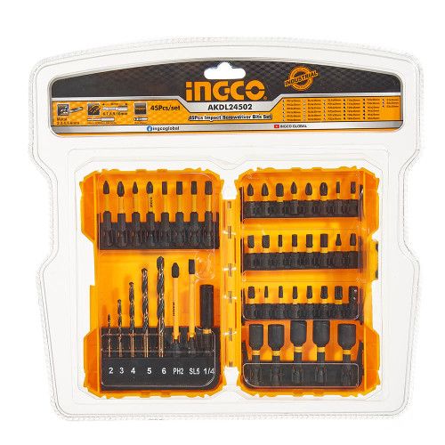 Набір ударних біт, головок та свердел 45 од. INGCO INDUSTRIAL