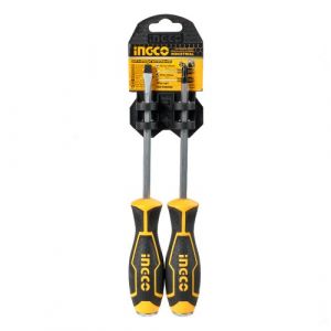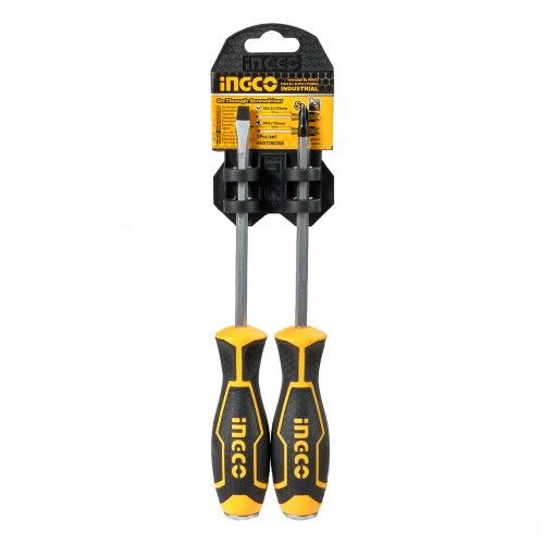 Набір викруток ударних 2 шт INGCO INDUSTRIAL містить в комплекті одну викрутку з прямим шліцом і одну викрутку з хрестовим.