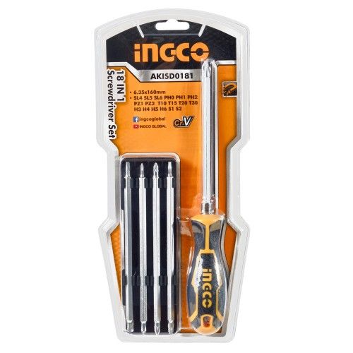 Набір викруток 18-в-1 INGCO застосовується для закручування і відкручування різних кріпильних елементів.