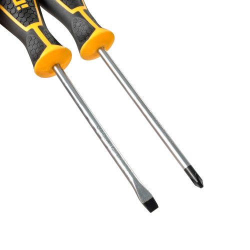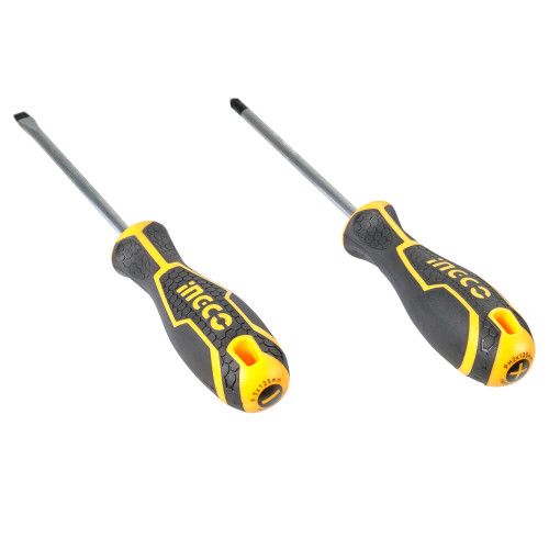 Набір викруток 2 шт INGCO INDUSTRIAL містить в комплекті одну викрутку з прямим шліцом і одну викрутку з хрестовим.