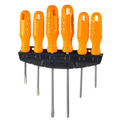 Набір викруток 6 шт INGCO містить в комплекті три викрутки з прямим шліцом і три викрутки з хрестовим. Інструменти використовуються для закручування і відкручування кріпильних елементів з різьбленням.