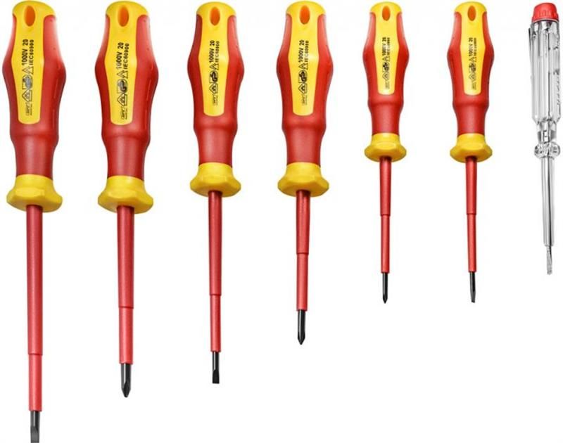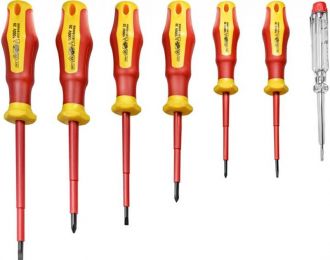Набір з 6 діелектричних викруток та індикатора напруги 125-250В для роботи під напругою до 1000В. Ергономічні ручки надійно ізольовані та забезпечують комфортну та безпечну роботу.