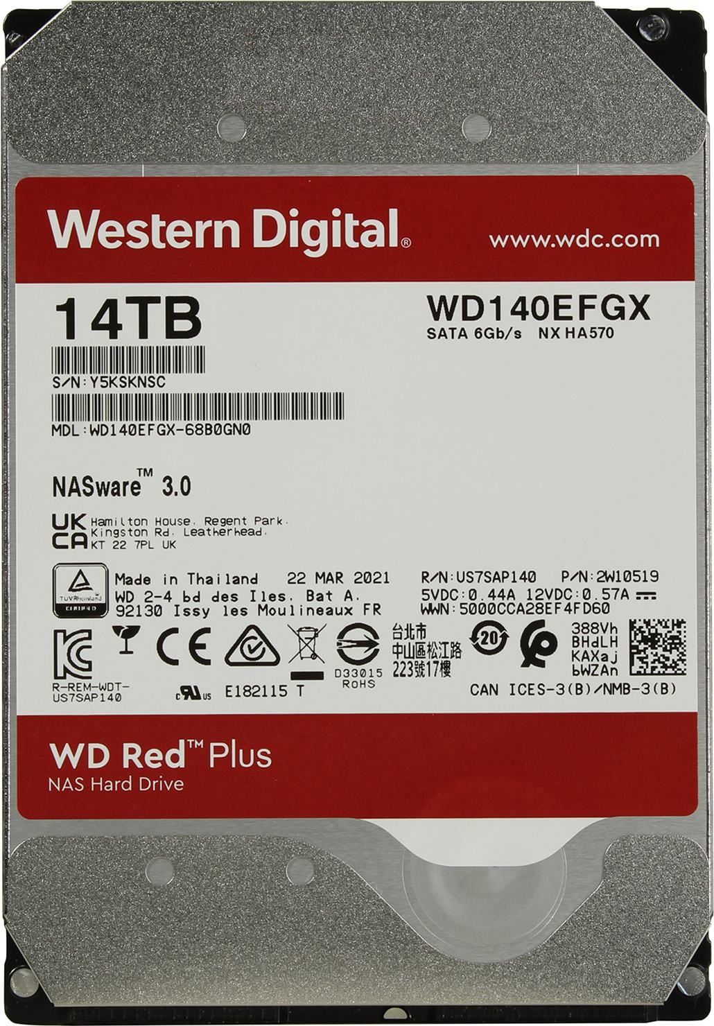 Накопичувач HDD SATA 14.0TB WD Red Plus 7200rpm 512MB (WD140EFGX)