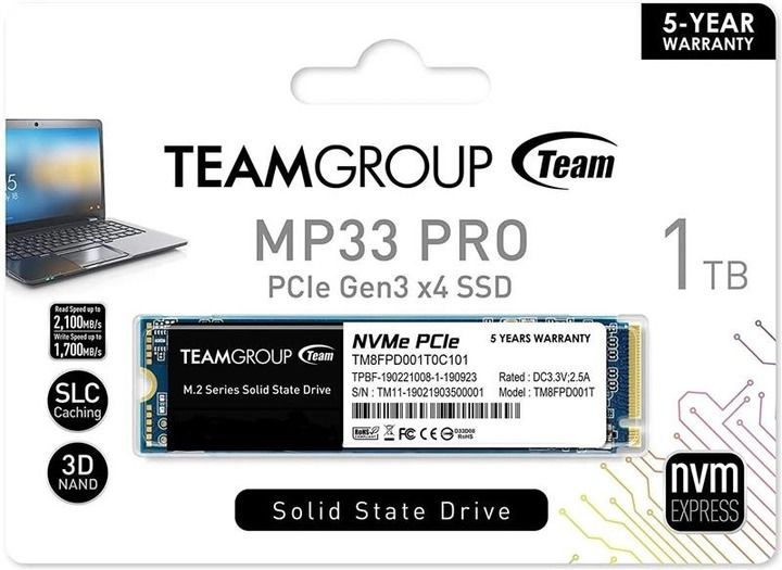 Накопичувач SSD 1TB Team MP33 Pro M.2 2280 PCIe 3.0 x4 3D TLC (TM8FPD001T0C101)