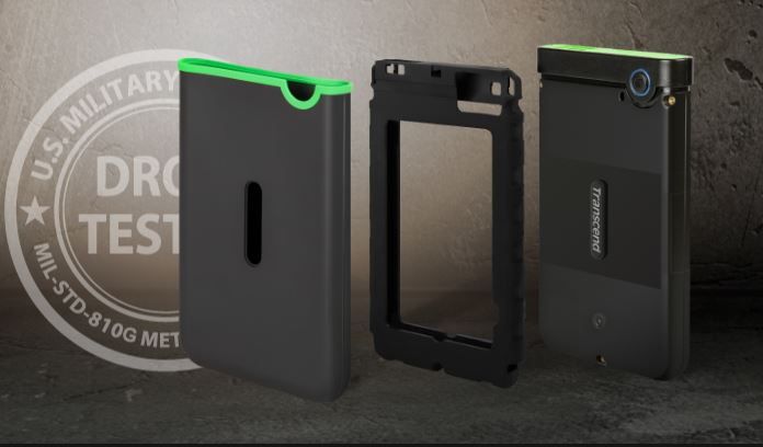 Триступеневий захист від ударів StoreJet 25M3 відповідає військовим стандартам США захисту від падіння MIL-STD-810G і гарантує високий рівень безпеки інформації, що зберігається на накопичувачі. Трикомпонентна система захисту від ударів складається з прогумованого силіконового чохла, внутрішнього демпфуючого підвісу накопичувача та міцного жорсткого корпусу.