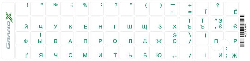 Наліпка на клавіатуру Grand-X Protection 60 keys Cyrillic Transparent/Green (GXTPGW)