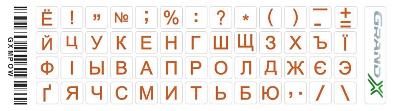 Наліпки на клавіатуру Grand-X Protection 52 keys Cyrillic Transparent/Orange (GXMPOW)